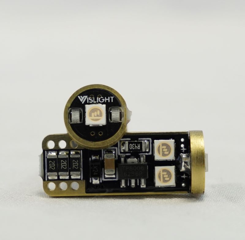 Đèn T10 Vislight sử dụng 3 chip LED gồm 2 chip LED 2 bên và 1 chip LED ở đỉnh, giúp ánh sáng tỏa đều xung quanh, và thích hợp với nhiều chóa đèn.